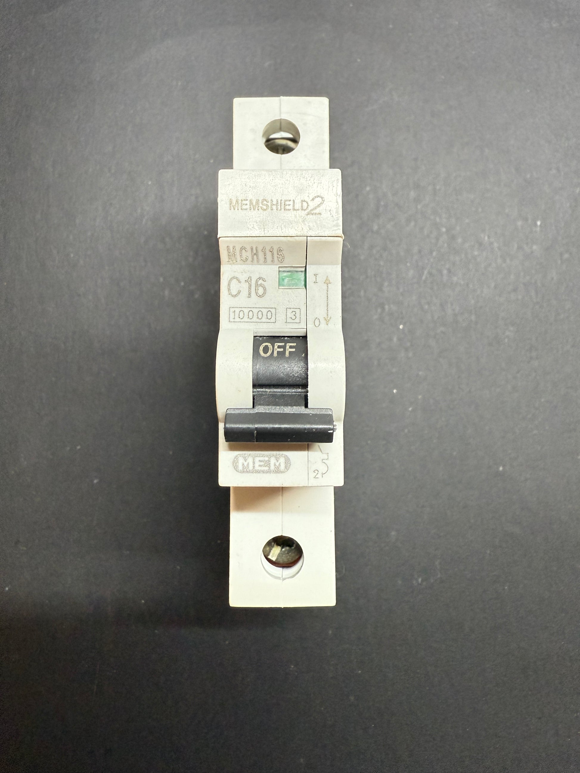 The MEM C16 MCB MCH116 is a miniature circuit breaker with a current rating of 16A. It is designed for single-pole applications and features a short circuit breaking capacity of 10,000. This product is used and sourced from the brand MEM.